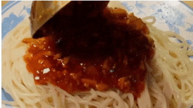 筋道的面条裹满浓郁酱汁